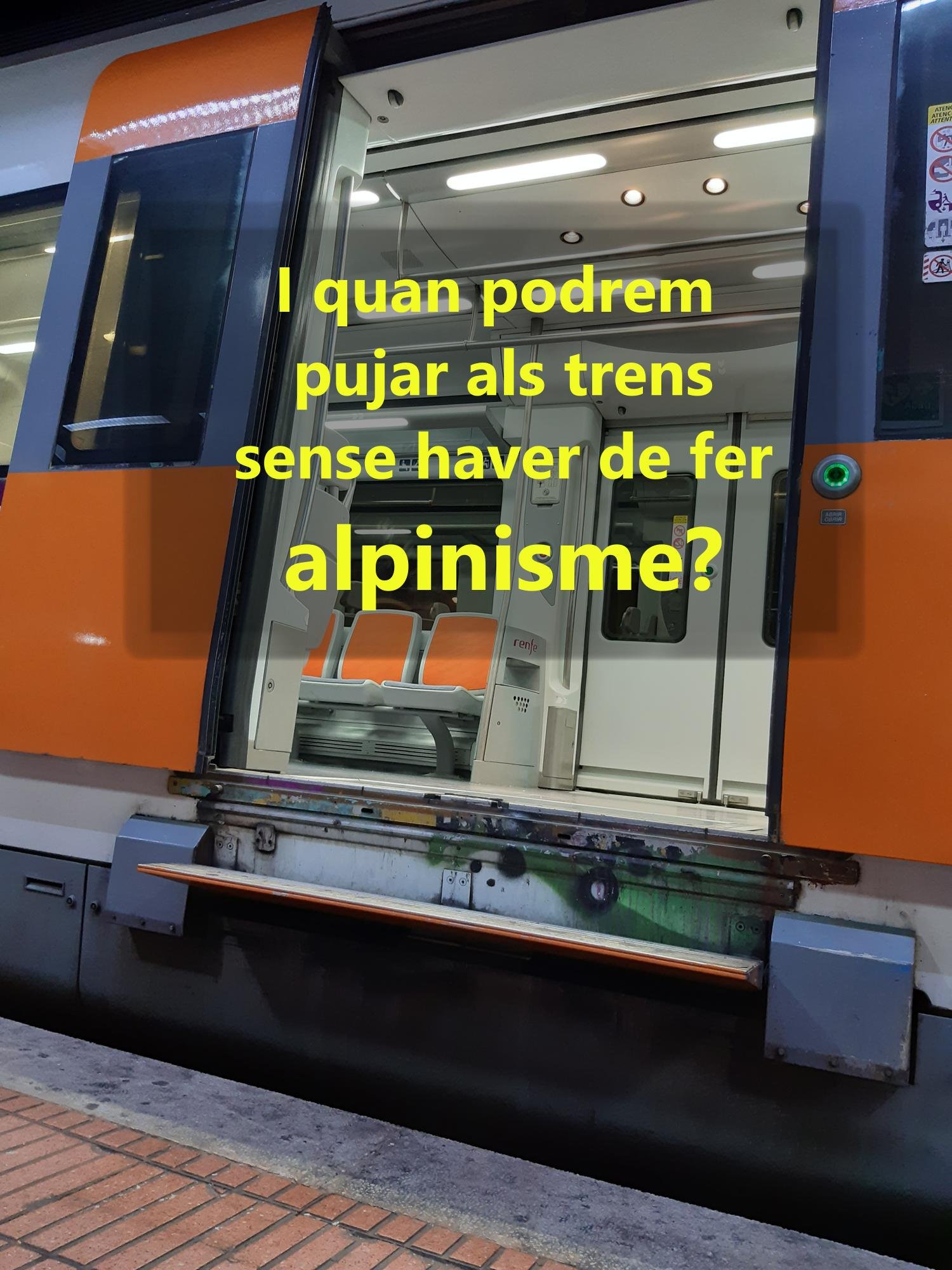Pujar a un dels trens "Civia" de Rodalies és tota una odissea. Les persones grans només poden pujar o baixar des de la porta per a persones amb mobilitat reduïda. I saltant!!