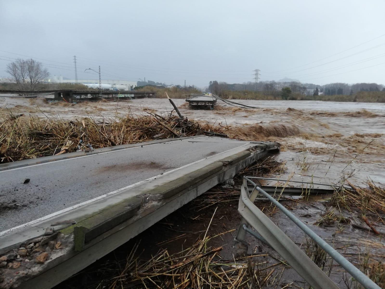 S'han trencat dos ponts: el del ferrocarril i el paral·lel de la carretera BV-6001/GIP-6831:
