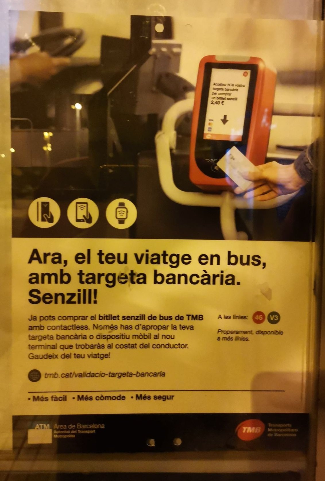 A mi em sembla molt bé la iniciativa del "contactless" per a l'únic títol que es ven a bord de l'autobús. Una distracció menys.