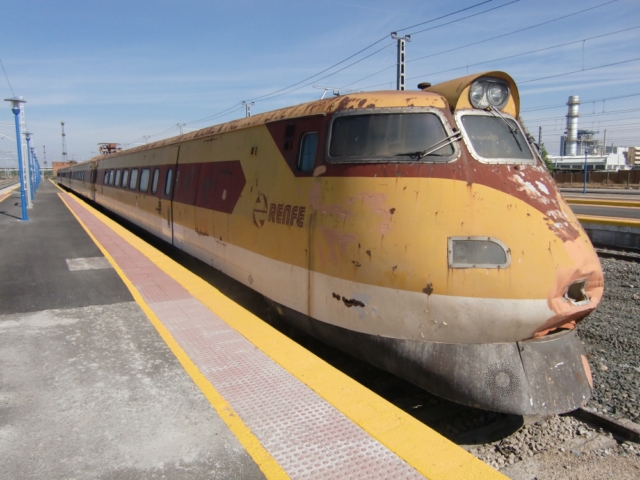 El problema de este tren estriba en el hecho de que durante años no hayan hecho nada con él. Si se pudo llevar a la estación, igualmente se puede sacar de la misma. Y este tren iba a correr la misma suerte que el 445, la diferencia estriba en que por una serie de presiones de alguna asociación o de alguien de Renfe, se consiguió llevar a Castejón con cualquier promesa que luego o no se ha podido o no se ha sabido cumplir. Y como dicha estación está transitada y parece que hay problemas para sacarlo de ahí, es por eso por lo que no lo pasaron ya por el soplete. Pero fijo que la idea inicial de Renfe era soplete vil en Fuencarral. Y como se lo quitaron de las manos o pensaron al principio cualquier reforma que luego se quedó en el olvido, aún sigue con vida gracias a eso.