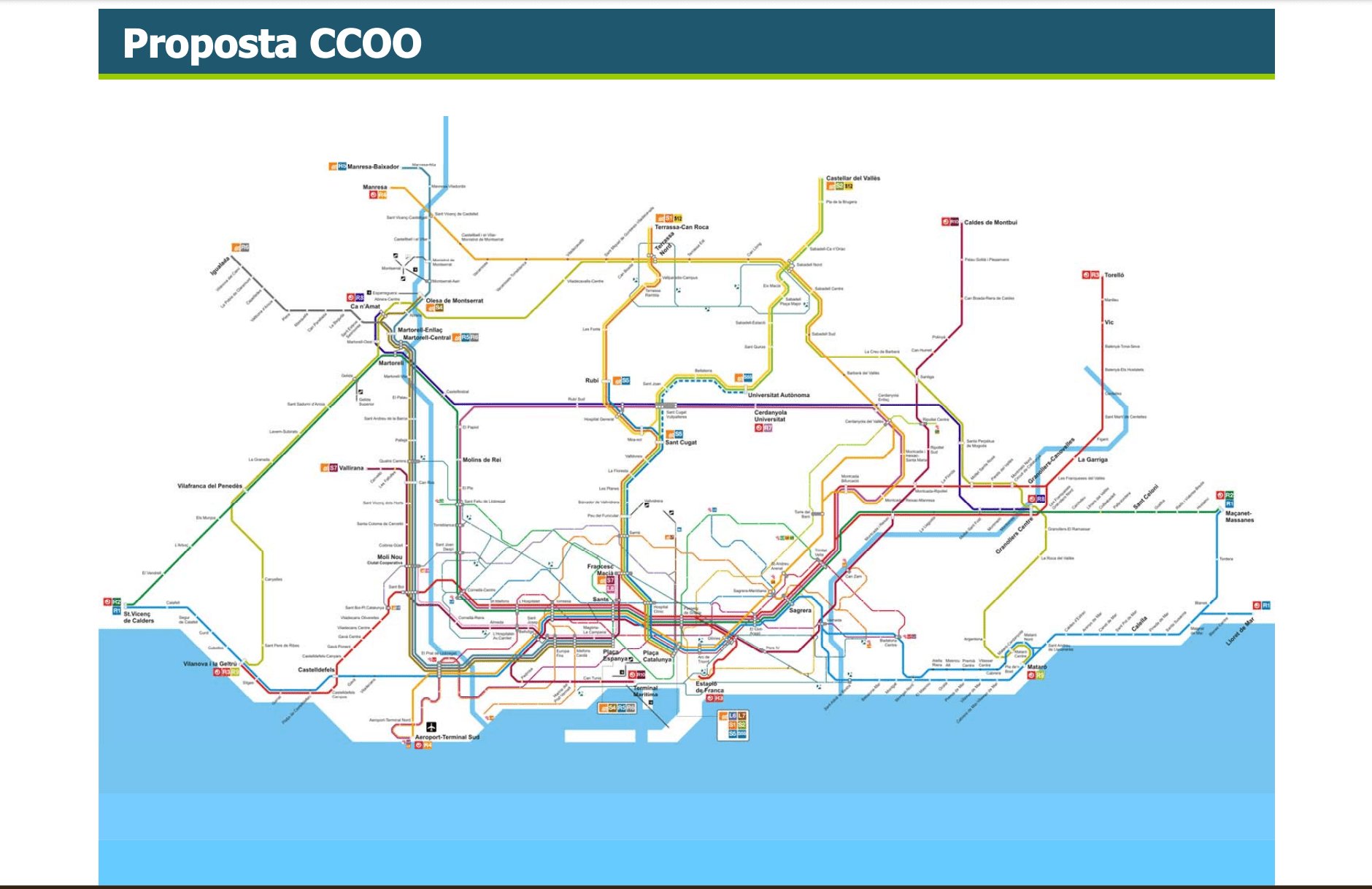M'acabo de topar amb aquest plànol, suposadament una proposta de CCOO, en un pdf penjat en la seva web oficial. Què en penseu? https://istas.net/descargas/Rodalies_RMB_01.pdf