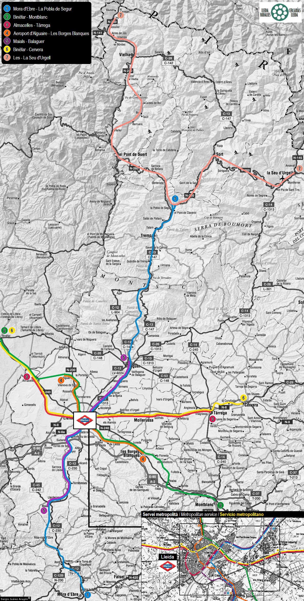 PD: En el área metropolitana de Lleida, las líneas harían de metro interior reforzando frecuencias interiores entre los puntos marcados.