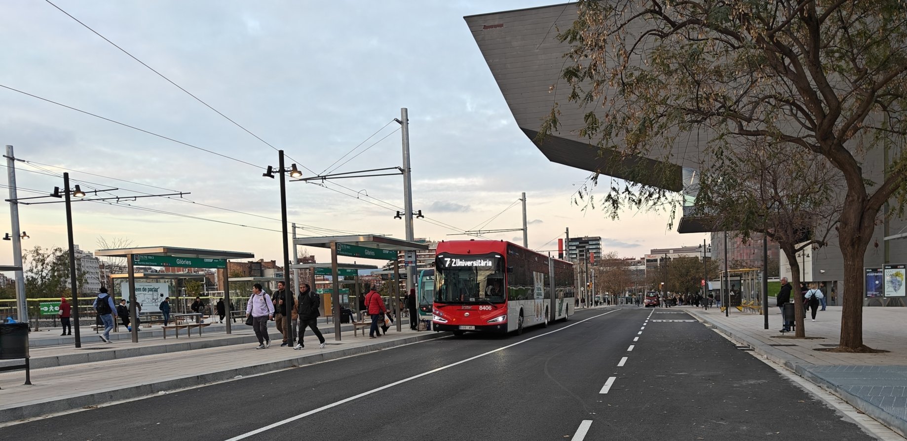 Des d'avui que han obert els busos a Glòries també en sentit Llobregat, deixant d'haver de fer les voltes excessives que a més els allunyaven de l'intercanviador.