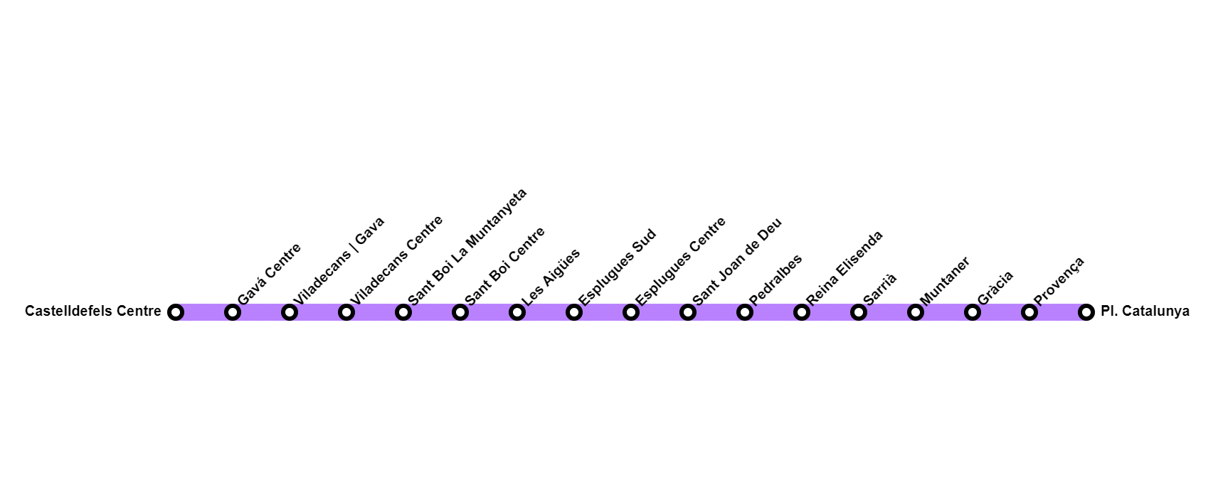 L12 Castelldefels Centre - Sarrià - Plaça de Catalunya.