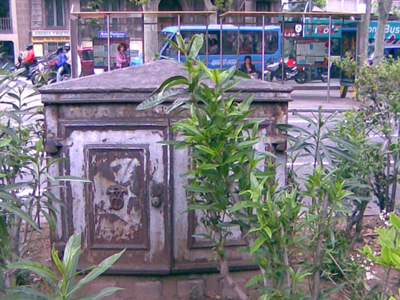 A Plaça Urquinaona, al darrera de la parada del bus 41, a un pas de vianants de distància amb l'armari que vaig trobar l'altre dia!