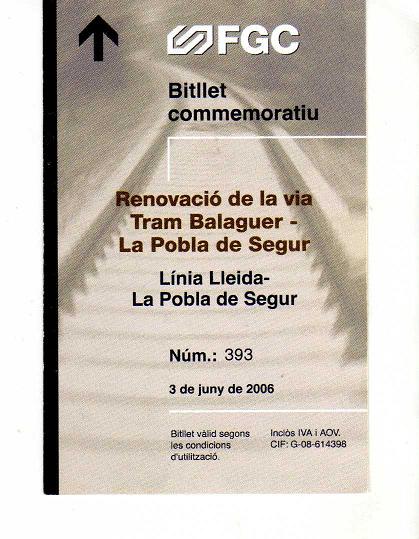 Bitllet commemoratiu renovació de vies.