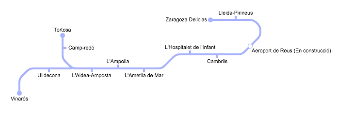 --Regionals/Servei de rodalia amb les 447 que podria fer el recorregut Tortosa-Tarragona, passant per la actual línia de la costa. Aixi, les estacions actuals de Cambrils, Salou i Port Aventura, no es deixarien d'utilitzar.