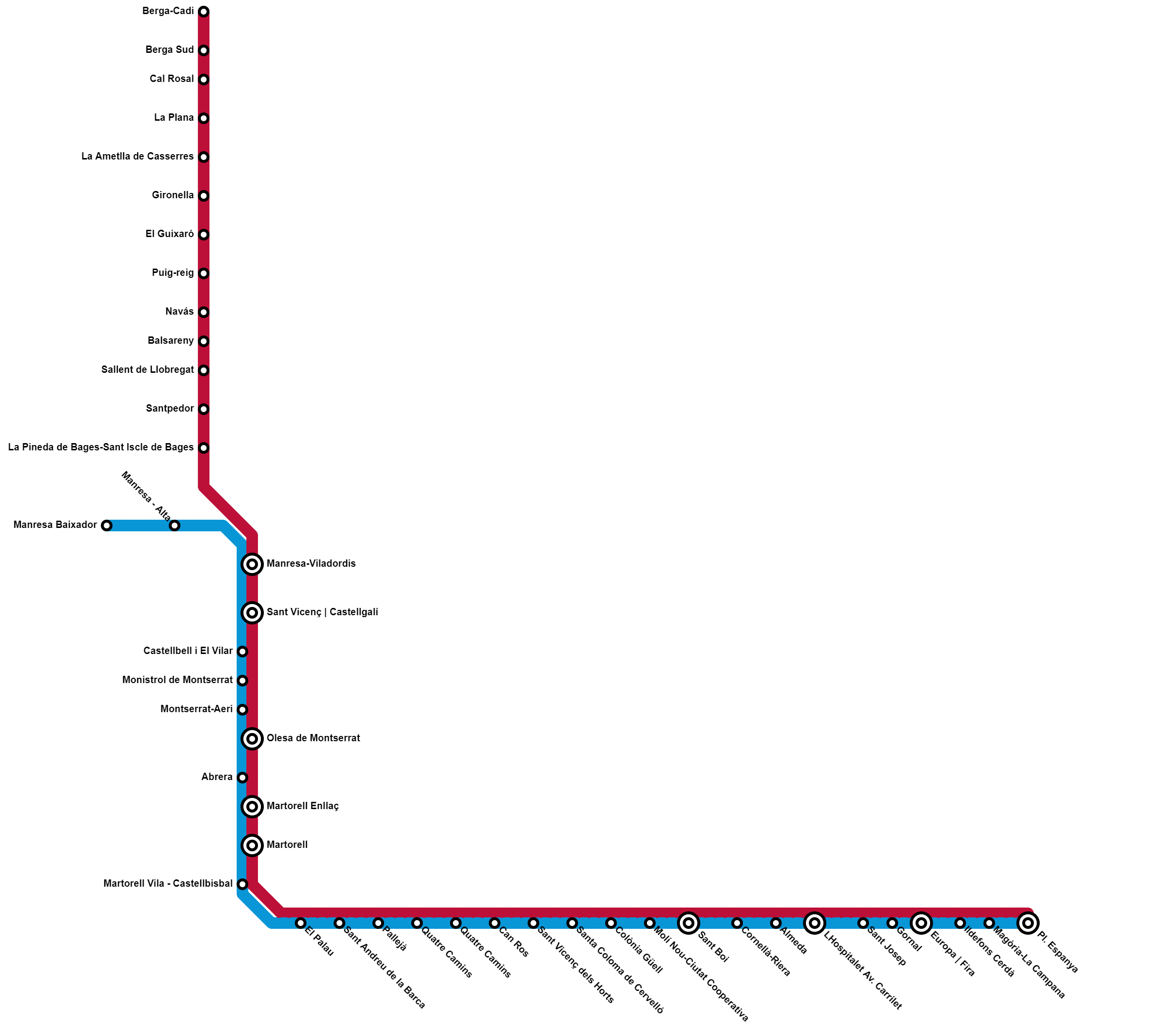 - He afegit l'estació de Poble Nou, entre Manresa Universitat i Manresa Centre, ja que el Departament no hi preveia cap estació.