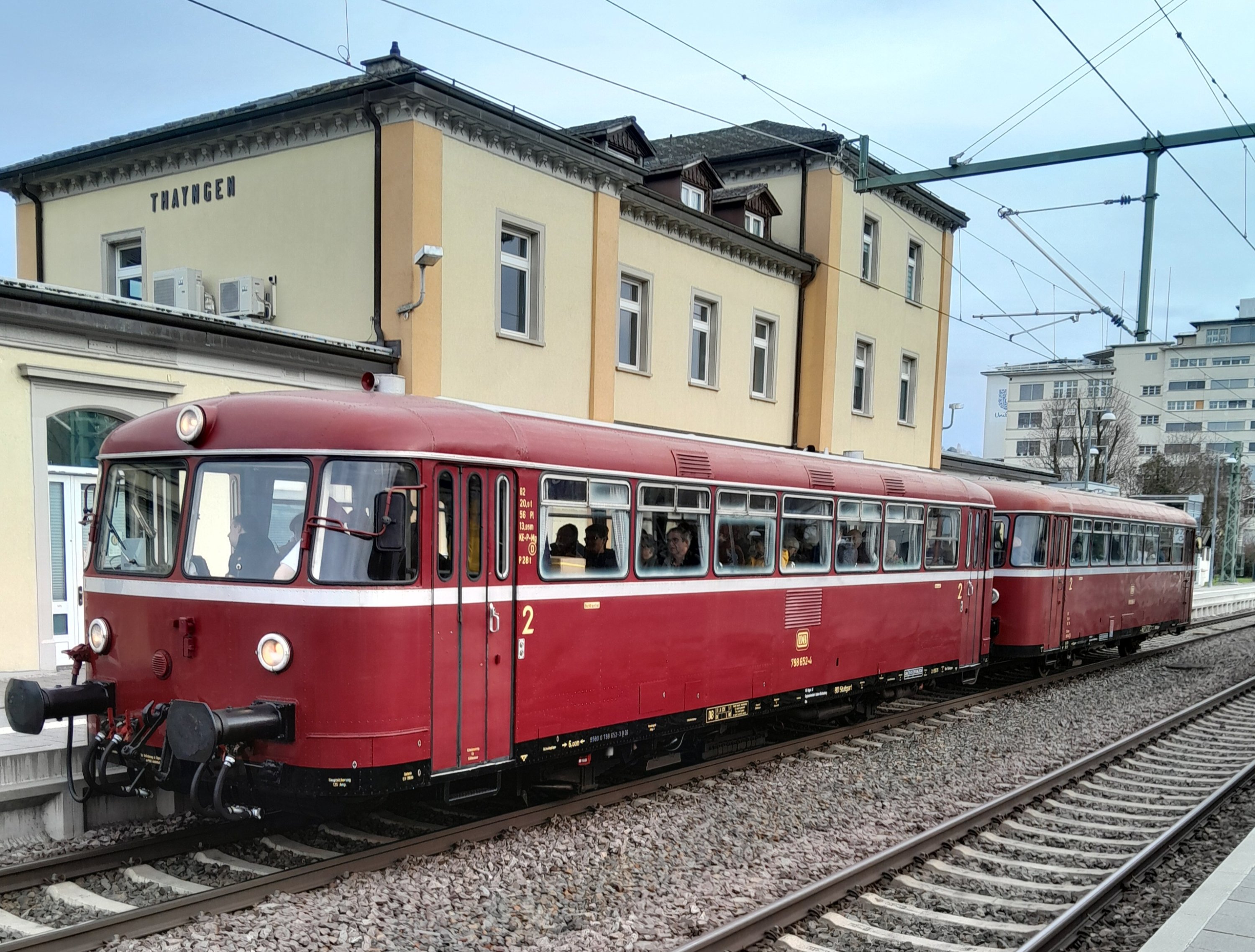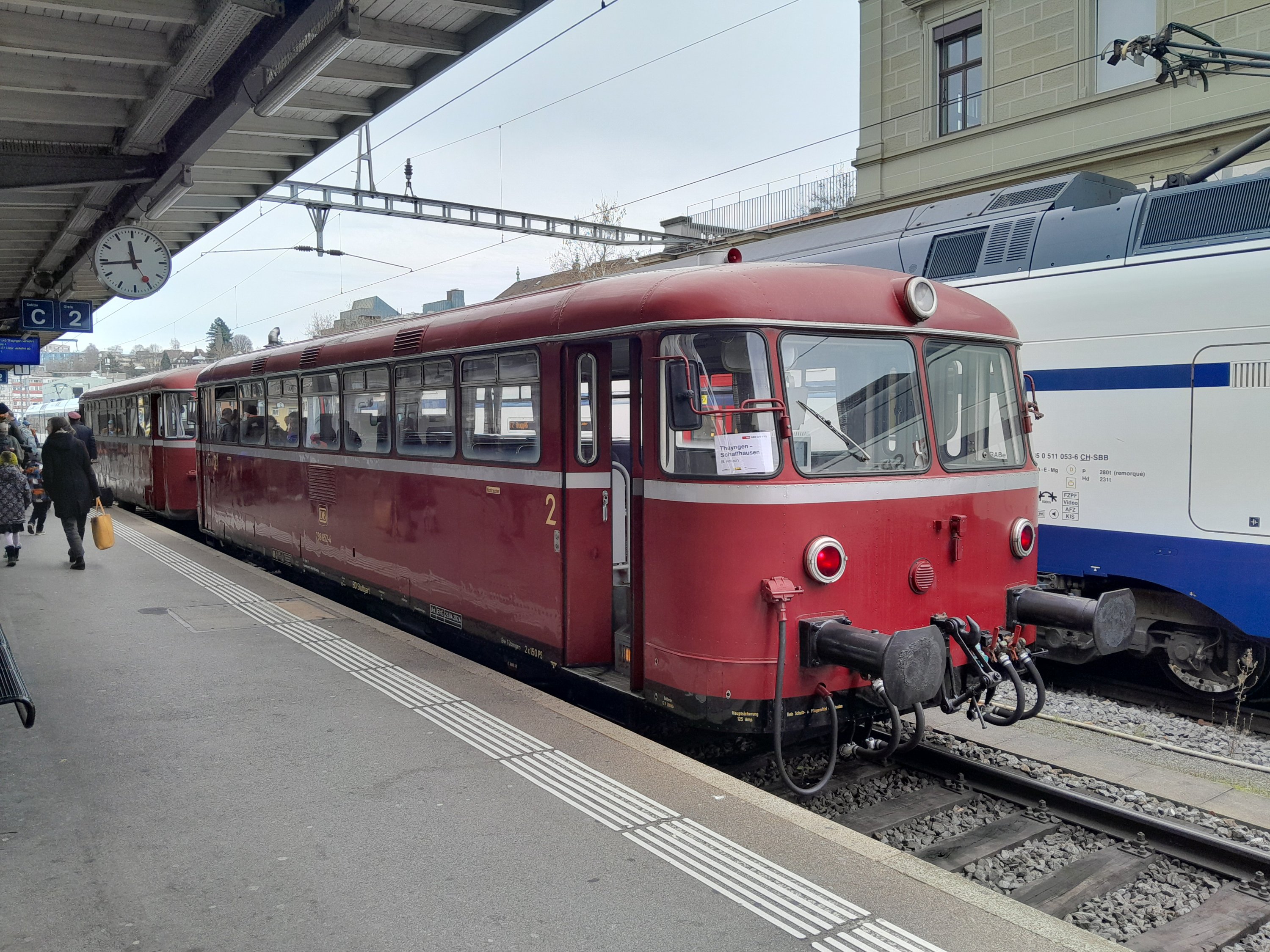 Al meu poble, Thayngen (prop d'Escafusa) amb el canvi d'horaris s'introdueix la freqüència de 15 minuts a l'hora punta, fins ara era freqüència de 15 minuts "coixa", osigui tres trens per hora amb un forat de 30 minuts. Tot i no ser un canvi enorme, han enviat uns flyers a tothom que inclou una promoció que consisteix en validar un cartrò (en forma dels bitllets multiples) varies vegades i enviar-lo per participar en el sorteig, i a més (i ara ve lo millor) van portar un ferrobús dels anys 50 d'un tipus que al passat va circular per aquesta regió, i el dissabte passat va estar tot el dia circulant entre Thayngen i Escafusa, i els viatgers que en montaven rebien un petit dolç nadalenc.