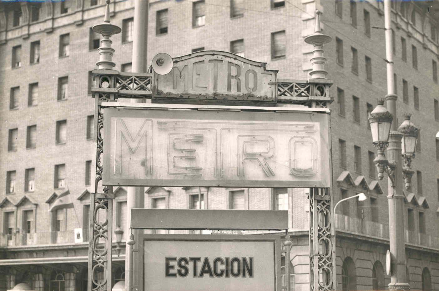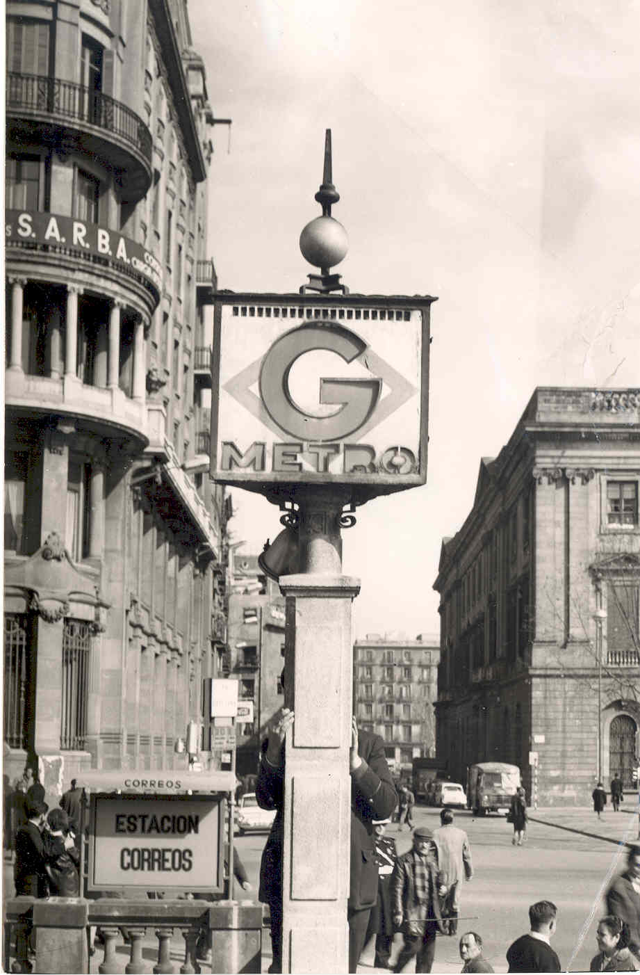 Una altra fotogràfia pel record. Una panoràmica perfecte del que no hauria d'haver desaparegut. Entrada del Metro Jaume I, amb les típiques columnes Gran Metro, i un bell edifici estil "Beaux Arts", malauradament substituit per un impersonal edifici d'oficines. Salut