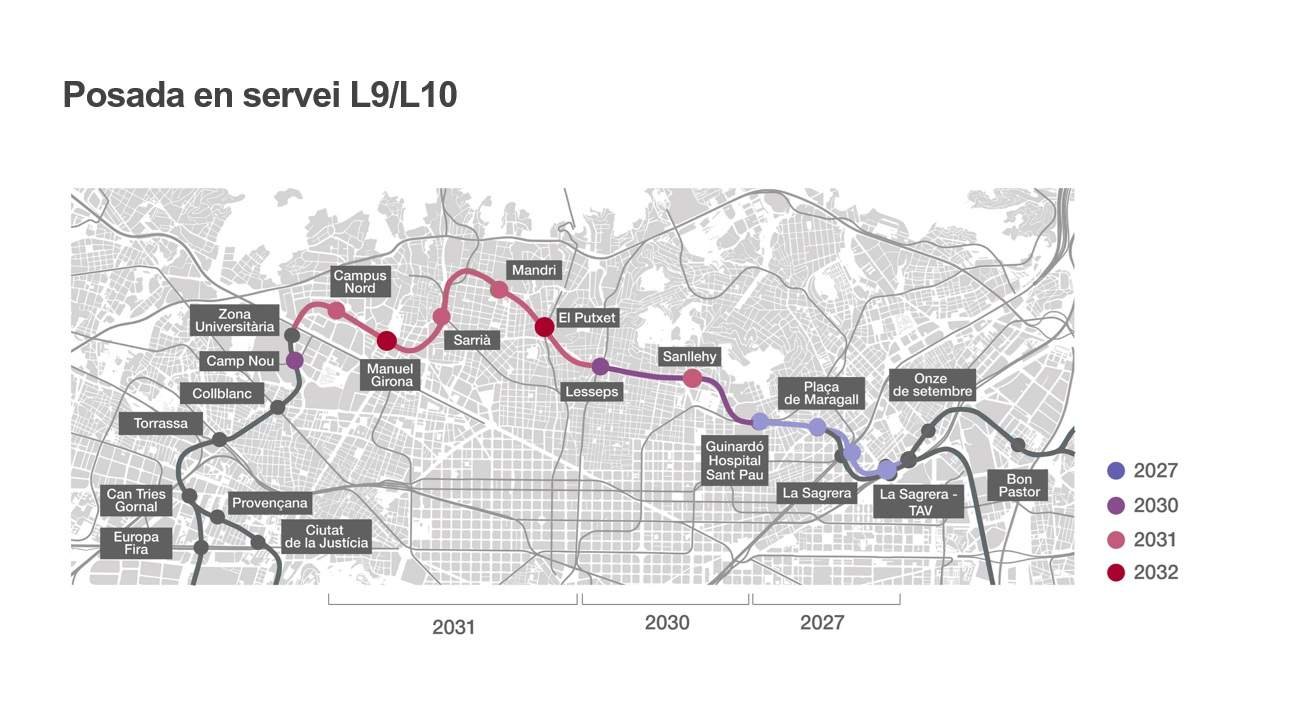 Tot i això, al maig Territori va confirmar que el 2027 es podran posar en marxa quatre estacions del tram central de les Línies 9 i 10. Són les de la Sagrera-TAV, la Sagrera, Plaça de Maragall i Guinardó – Hospital de Sant Pau.