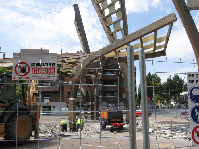 Aquí, unes fotografies d'avui. Comencen per retirar aquella mena de "peinetes" de la plaça Virrei Amat.