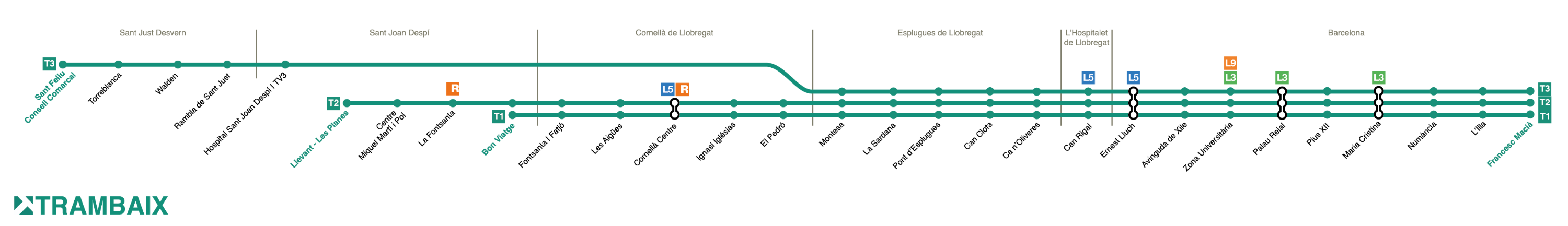 - Afegida futura prolongació de la línia T3 del Trambaix cap a Sant Feliu