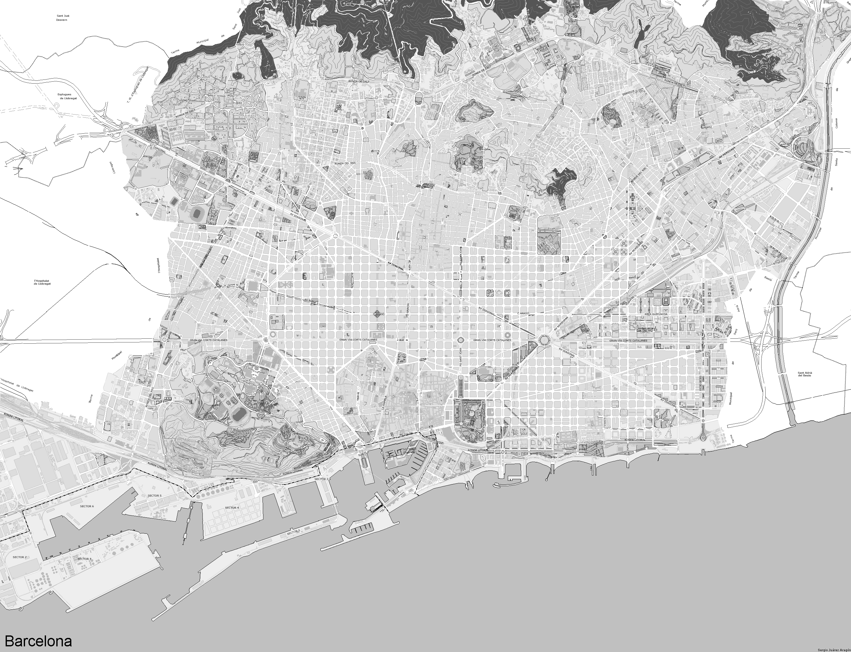 Bueno, pues voy a empezar con un plano a gran escala en blanco y negro de Bacelona ciudad.