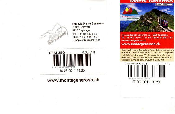 Models actuals de bitllet al cremallera de Monte Generoso, models de taquilla i de bar "buffet".