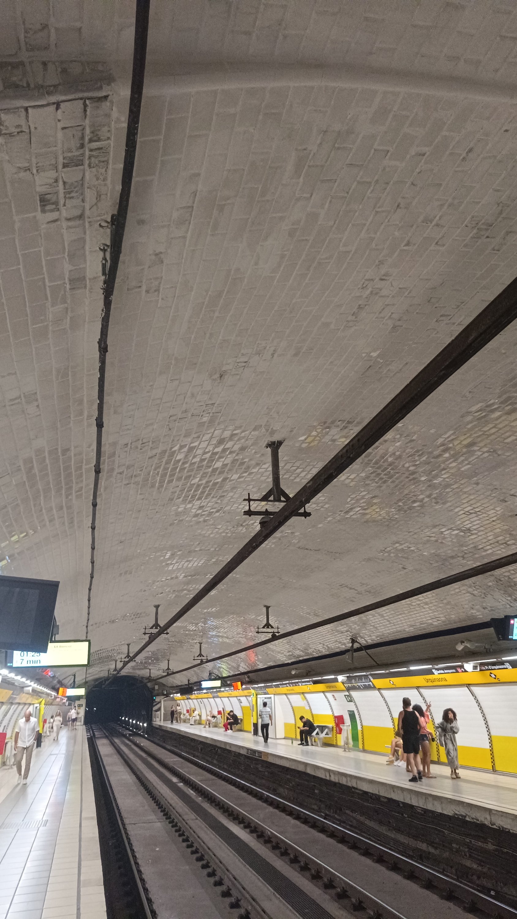 Resulta que, justament a Diagonal L3, fa uns anys van pintar de negre les rajoles originals del sostre. I ara pinten de blanc les rajoles marrons.