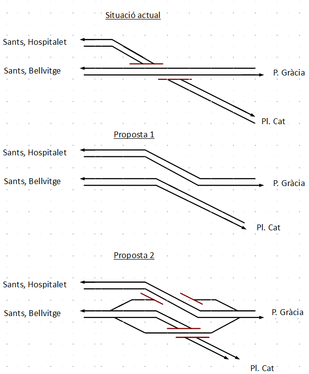 Seria, a l'entrada nord de Sants, fer un canvi de rasant dels túnels de l'avinguda de Roma, per tal de que les vies que venen de l'Hospitalet s'encaminin cap al túnel de Passeig de Gràcia i les vies que venen de Bellvitge cap al túnel de Plaça Catalunya: