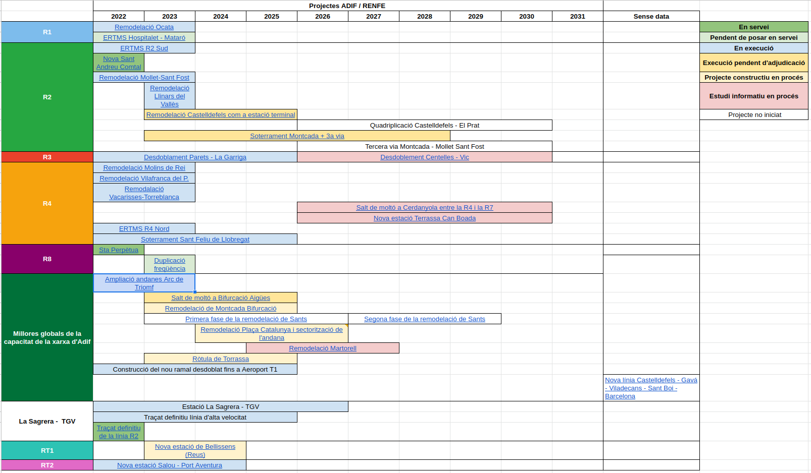 Jo tinc aquests quadres-resum fet en el qual vaig fent el seguiment de les millores en infraestructura ferroviària: